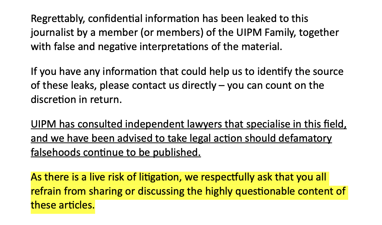 This newsletter has reported extensively and exclusively – in English and in German – on the circumstances surrounding the 2024 election congress in Saudi Arabia, corruption in the UIPM, numerous mutual accusations and ethics charges, possible international criminal investigations, widespread lack of transparency and numerous dubious transactions by the long-standing UIPM emperor Klaus Schormann, a serial liar. You are welcome to read about it, for example here:
