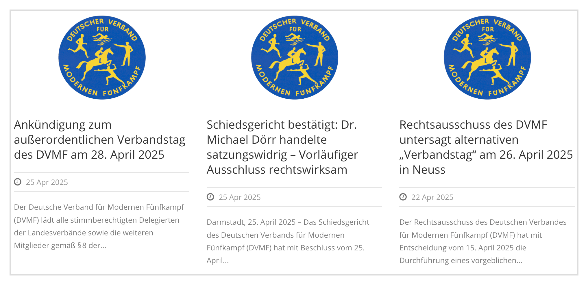 Die neue Führung legt das beglaubigte Protokoll des Verbandstages und alle dazugehörigen Dokumente dem Registergericht vor. Ein Rechtspfleger des Gerichts hatte am 9. April, mit einem Amtssiegel versehen, die Auskunft erteilt, dass der Deutsche Verband für Modernen Fünfkampf e. V. handlungsfähig sei. Mithin scheint der Verbandstag am Sonnabend rechtmäßig gewesen zu sein.